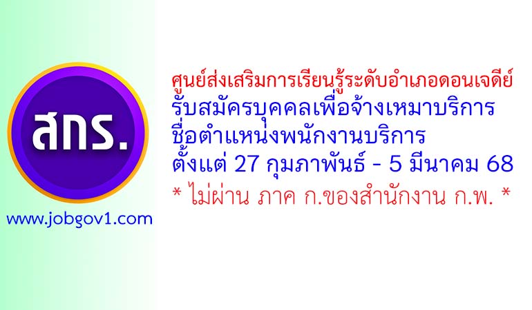 ศูนย์ส่งเสริมการเรียนรู้ระดับอำเภอดอนเจดีย์ รับสมัครบุคคลเพื่อจ้างเหมาบริการ ตำแหน่งพนักงานบริการ ตั้งแต่ 27 กุมภาพันธ์ – 5 มีนาคม 2568