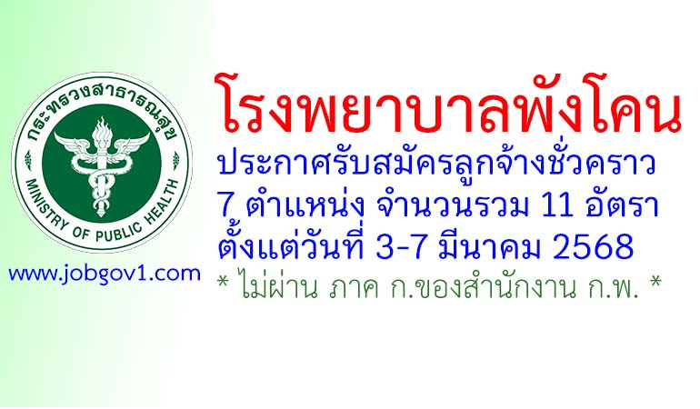 โรงพยาบาลพังโคน รับสมัครลูกจ้างชั่วคราว 11 อัตรา ตั้งแต่วันที่ 3-7 มีนาคม 2568