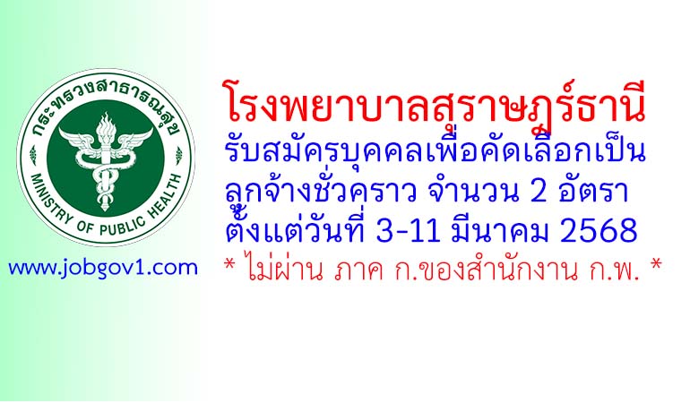 โรงพยาบาลสุราษฎร์ธานี รับสมัครลูกจ้างชั่วคราว 2 อัตรา ตั้งแต่วันที่ 3-11 มีนาคม 2568