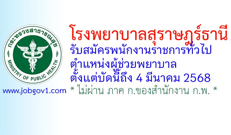 โรงพยาบาลสุราษฎร์ธานี รับสมัครพนักงานราชการทั่วไป ตำแหน่งผู้ช่วยพยาบาล ตั้งแต่บัดนี้ถึง 4 มีนาคม 2568
