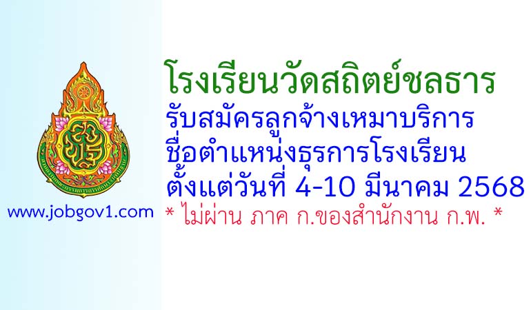 โรงเรียนวัดสถิตย์ชลธาร รับสมัครลูกจ้างเหมาบริการ ตำแหน่งธุรการโรงเรียน ตั้งแต่วันที่ 4-10 มีนาคม 2568