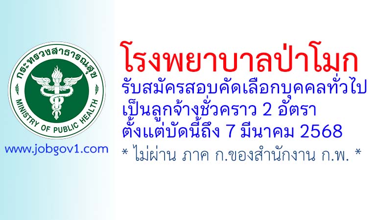 โรงพยาบาลป่าโมก รับสมัครลูกจ้างชั่วคราว 2 อัตรา ตั้งแต่บัดนี้ถึง 7 มีนาคม 2568