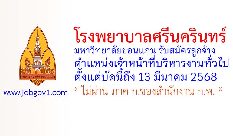 โรงพยาบาลศรีนครินทร์ รับสมัครลูกจ้าง ตำแหน่งเจ้าหน้าที่บริหารงานทั่วไป ตั้งแต่บัดนี้ถึง 13 มีนาคม 2568