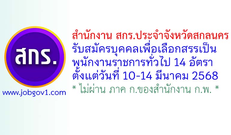 สำนักงาน สกร.ประจำจังหวัดสกลนคร รับสมัครบุคคลเพื่อเลือกสรรเป็นพนักงานราชการทั่วไป 14 อัตรา ตั้งแต่วันที่ 10-14 มีนาคม 2568
