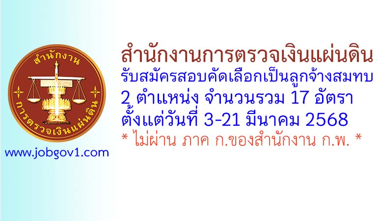 สำนักงานการตรวจเงินแผ่นดิน รับสมัครสอบคัดเลือกเป็นลูกจ้างสมทบ 17 อัตรา ตั้งแต่วันที่ 3-21 มีนาคม 2568
