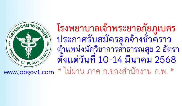 โรงพยาบาลเจ้าพระยาอภัยภูเบศร รับสมัครลูกจ้างชั่วคราว ตำแหน่งนักวิชาการสาธารณสุข 2 อัตรา ตั้งแต่วันที่ 10-14 มีนาคม 2568