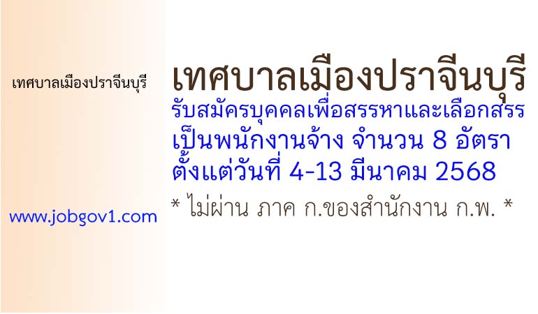 เทศบาลเมืองปราจีนบุรี รับสมัครบุคคลเพื่อสรรหาและเลือกสรรเป็นพนักงานจ้าง 8 อัตรา ตั้งแต่วันที่ 4-13 มีนาคม 2568