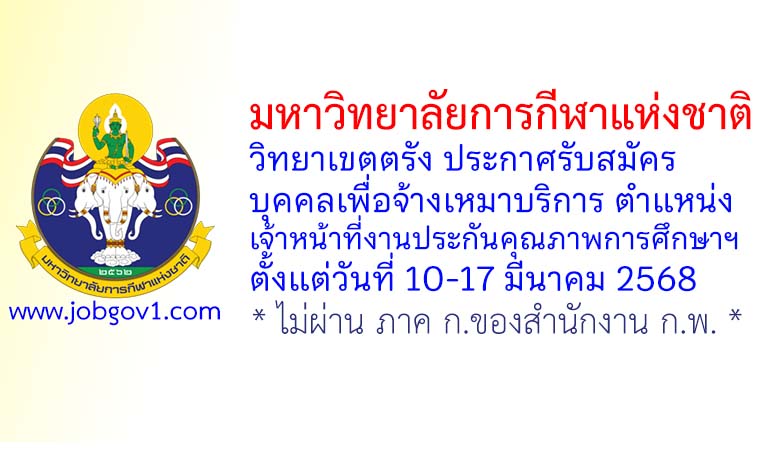 มหาวิทยาลัยการกีฬาแห่งชาติ วิทยาเขตตรัง รับสมัครบุคคลจ้างเหมาบริการ ตำแหน่งเจ้าหน้าที่งานประกันคุณภาพการศึกษาฯ ตั้งแต่วันที่ 10-17 มีนาคม 2568