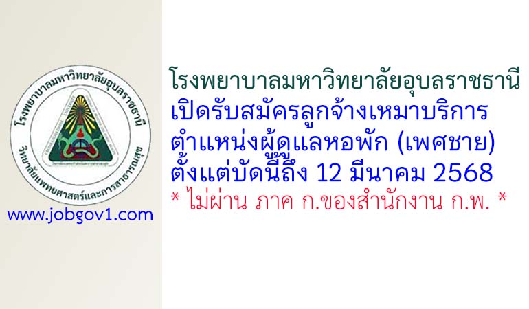 โรงพยาบาลมหาวิทยาลัยอุบลราชธานี รับสมัครลูกจ้างเหมาบริการ ตำแหน่งผู้ดูแลหอพัก (เพศชาย) ตั้งแต่บัดนี้ถึง 12 มีนาคม 2568