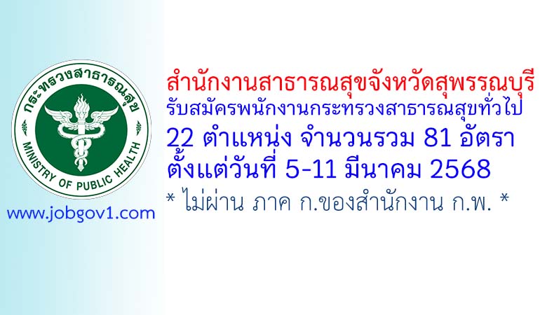 สำนักงานสาธารณสุขจังหวัดสุพรรณบุรี รับสมัครพนักงานกระทรวงสาธารณสุขทั่วไป 81 อัตรา ตั้งแต่วันที่ 5-11 มีนาคม 2568