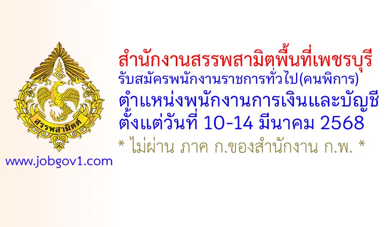 สำนักงานสรรพสามิตพื้นที่เพชรบุรี รับสมัครพนักงานราชการทั่วไป(คนพิการ) ตำแหน่งพนักงานการเงินและบัญชี ตั้งแต่วันที่ 10-14 มีนาคม 2568