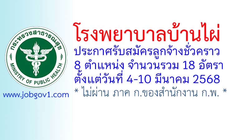 โรงพยาบาลบ้านไผ่ รับสมัครลูกจ้างชั่วคราว 18 อัตรา ตั้งแต่วันที่ 4-10 มีนาคม 2568