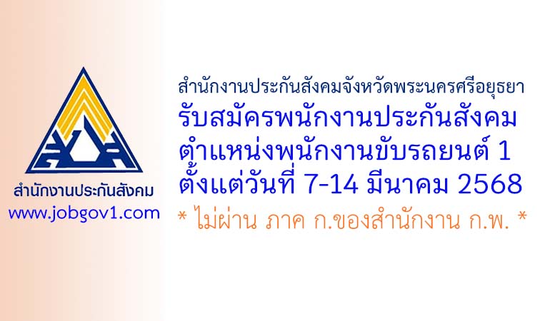 สำนักงานประกันสังคมจังหวัดพระนครศรีอยุธยา รับสมัครพนักงานประกันสังคม ตำแหน่งพนักงานขับรถยนต์ 1 ตั้งแต่วันที่ 7-14 มีนาคม 2568