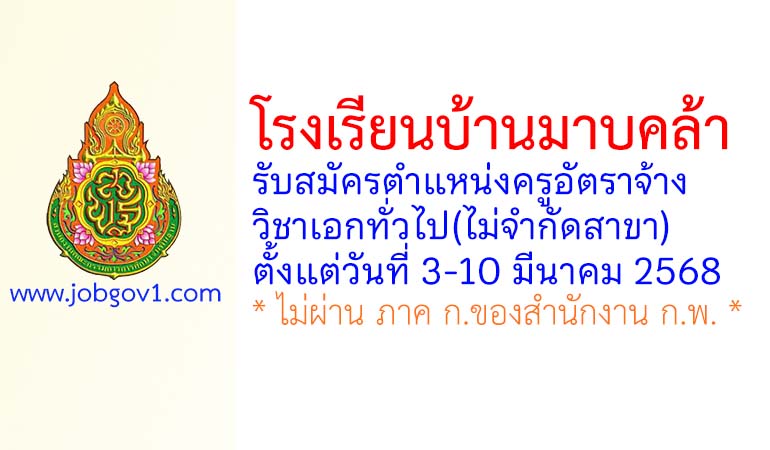โรงเรียนบ้านมาบคล้า รับสมัครครูอัตราจ้าง วิชาเอกทั่วไป(ไม่จำกัดสาขา) ตั้งแต่วันที่ 3-10 มีนาคม 2568