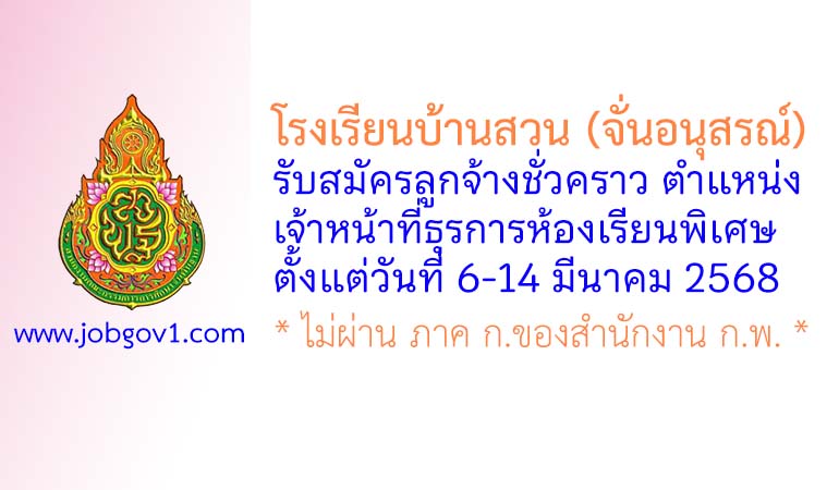 โรงเรียนบ้านสวน (จั่นอนุสรณ์) รับสมัครลูกจ้างชั่วคราว ตำแหน่งเจ้าหน้าที่ธุรการห้องเรียนพิเศษ ตั้งแต่วันที่ 6-14 มีนาคม 2568