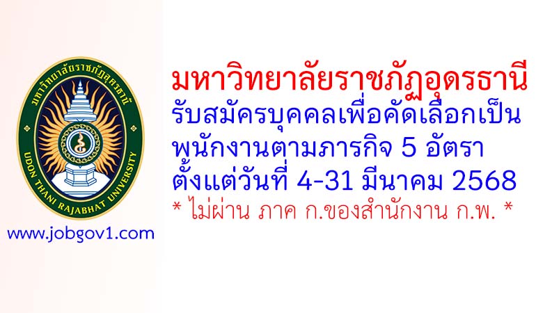 มหาวิทยาลัยราชภัฏอุดรธานี รับสมัครบุคคลเพื่อคัดเลือกเป็นพนักงานตามภารกิจ 5 อัตรา ตั้งแต่วันที่ 4-31 มีนาคม 2568