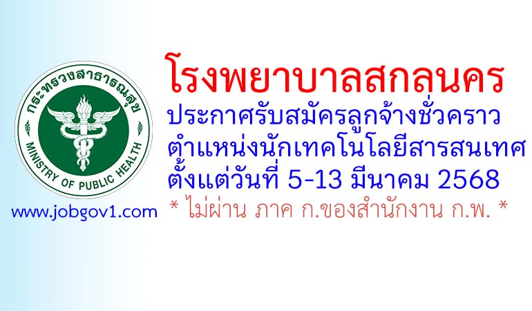โรงพยาบาลสกลนคร รับสมัครลูกจ้างชั่วคราว ตำแหน่งนักเทคโนโลยีสารสนเทศ ตั้งแต่วันที่ 5-13 มีนาคม 2568