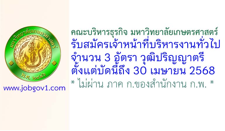 คณะบริหารธุรกิจ มหาวิทยาลัยเกษตรศาสตร์ รับสมัครเจ้าหน้าที่บริหารงานทั่วไป 3 อัตรา ตั้งแต่บัดนี้ถึง 30 เมษายน 2568