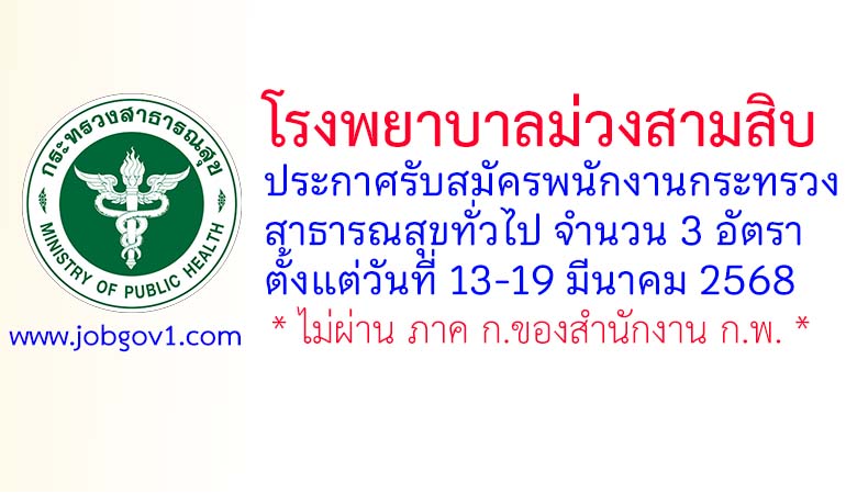 โรงพยาบาลม่วงสามสิบ รับสมัครพนักงานกระทรวงสาธารณสุขทั่วไป 3 อัตรา ตั้งแต่วันที่ 13-19 มีนาคม 2568
