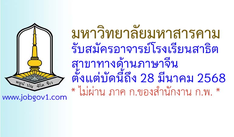 มหาวิทยาลัยมหาสารคาม รับสมัครอาจารย์โรงเรียนสาธิต สาขาทางด้านภาษาจีน ตั้งแต่บัดนี้ถึง 28 มีนาคม 2568