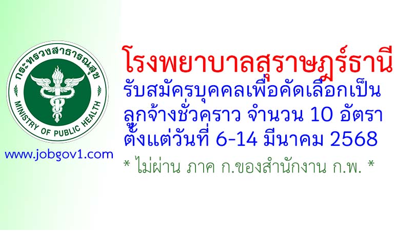 โรงพยาบาลสุราษฎร์ธานี รับสมัครลูกจ้างชั่วคราว 10 อัตรา ตั้งแต่วันที่ 6-14 มีนาคม 2568
