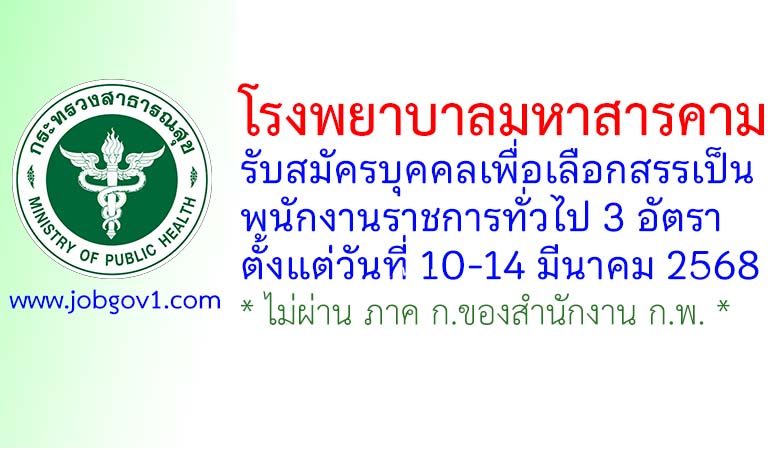 โรงพยาบาลมหาสารคาม รับสมัครบุคคลเพื่อเลือกสรรเป็นพนักงานราชการทั่วไป 3 อัตรา ตั้งแต่วันที่ 10-14 มีนาคม 2568