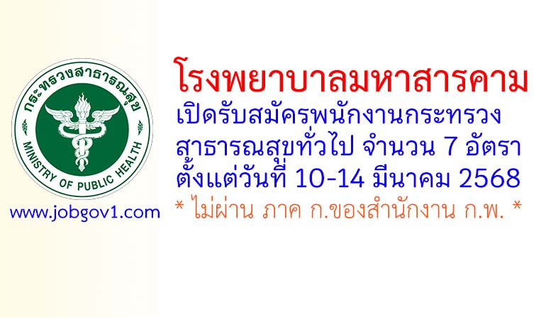 โรงพยาบาลมหาสารคาม รับสมัครพนักงานกระทรวงสาธารณสุขทั่วไป 7 อัตรา ตั้งแต่วันที่ 10-14 มีนาคม 2568