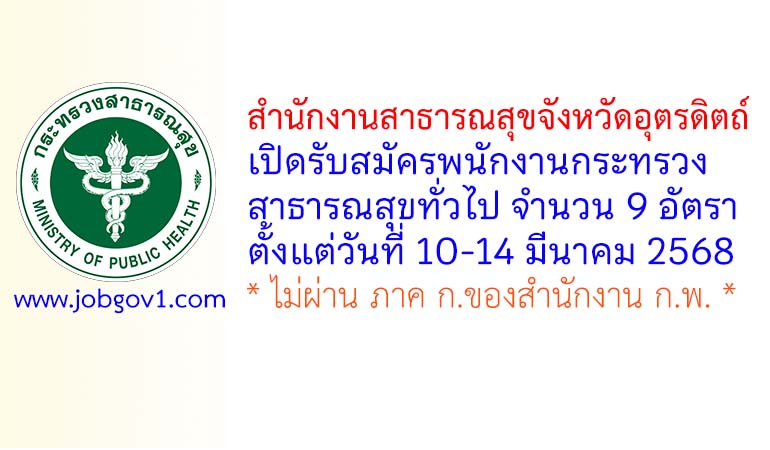 สำนักงานสาธารณสุขจังหวัดอุตรดิตถ์ รับสมัครพนักงานกระทรวงสาธารณสุขทั่วไป 9 อัตรา ตั้งแต่วันที่ 10-14 มีนาคม 2568