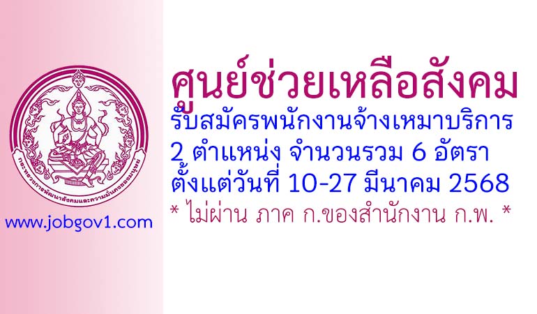 ศูนย์ช่วยเหลือสังคม รับสมัครพนักงานจ้างเหมาบริการ 6 อัตรา ตั้งแต่วันที่ 10-27 มีนาคม 2568