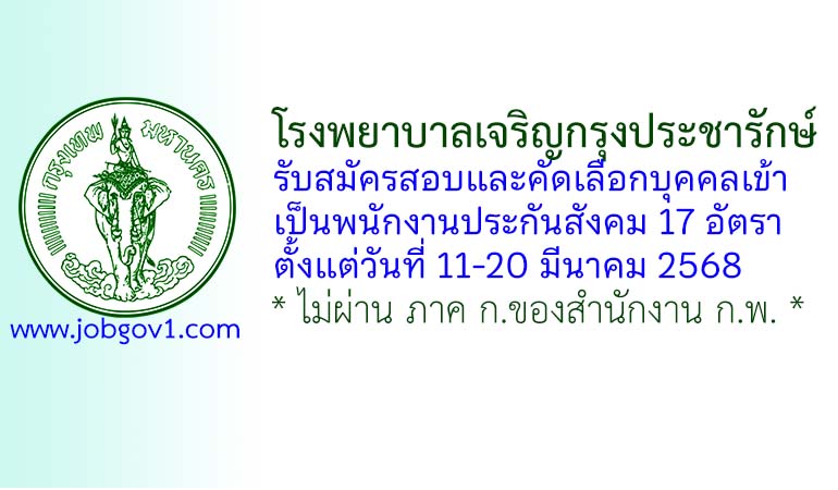 โรงพยาบาลเจริญกรุงประชารักษ์ รับสมัครสอบและคัดเลือกบุคคลเข้าเป็นพนักงานประกันสังคม 17 อัตรา ตั้งแต่วันที่ 11-20 มีนาคม 2568