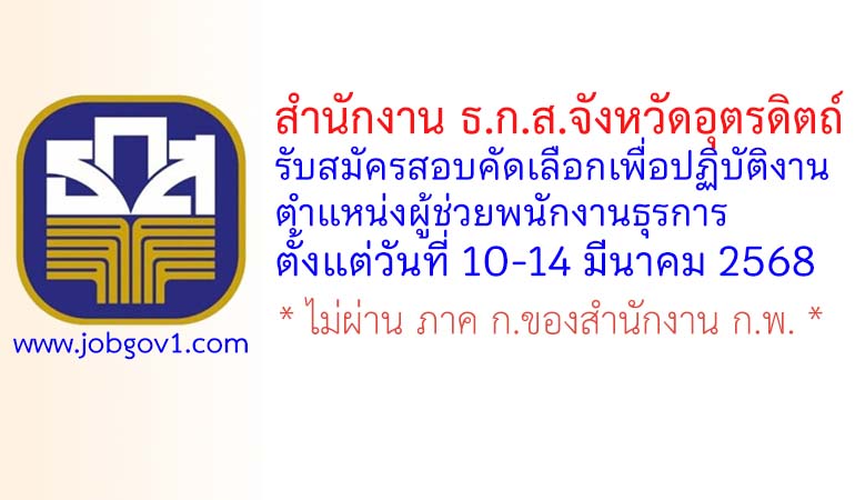 สำนักงาน ธ.ก.ส.จังหวัดอุตรดิตถ์ รับสมัครสอบคัดเลือกเพื่อปฏิบัติงาน ตำแหน่งผู้ช่วยพนักงานธุรการ ตั้งแต่วันที่ 10-14 มีนาคม 2568