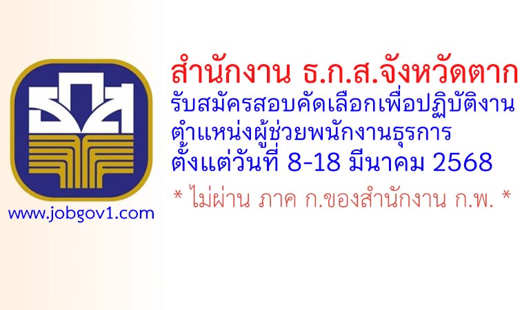 สำนักงาน ธ.ก.ส.จังหวัดตาก รับสมัครสอบคัดเลือกเพื่อปฏิบัติงาน ตำแหน่งผู้ช่วยพนักงานธุรการ ตั้งแต่วันที่ 8-18 มีนาคม 2568