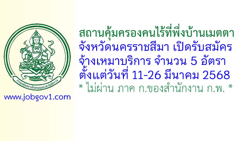 สถานคุ้มครองคนไร้ที่พึ่งบ้านเมตตา จังหวัดนครราชสีมา รับสมัครจ้างเหมาบริการ 5 อัตรา ตั้งแต่วันที่ 11-26 มีนาคม 2568