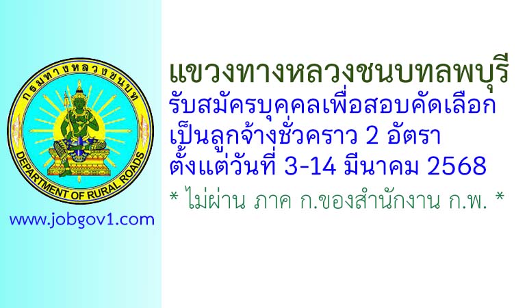 แขวงทางหลวงชนบทลพบุรี รับสมัครลูกจ้างชั่วคราว 2 อัตรา ตั้งแต่วันที่ 3-14 มีนาคม 2568