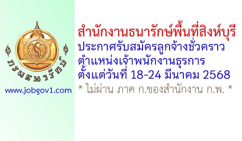 สำนักงานธนารักษ์พื้นที่สิงห์บุรี รับสมัครลูกจ้างชั่วคราว ตำแหน่งเจ้าพนักงานธุรการ ตั้งแต่วันที่ 18-24 มีนาคม 2568