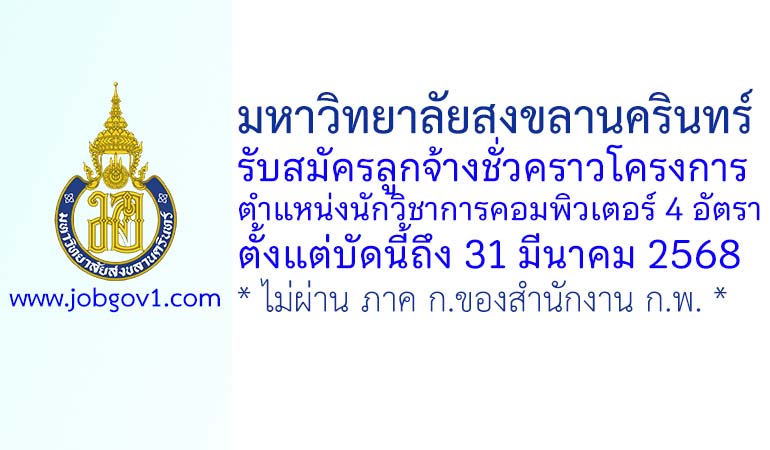 มหาวิทยาลัยสงขลานครินทร์ รับสมัครลูกจ้างชั่วคราวโครงการ ตำแหน่งนักวิชาการคอมพิวเตอร์ 4 อัตรา ตั้งแต่บัดนี้ถึง 31 มีนาคม 2568