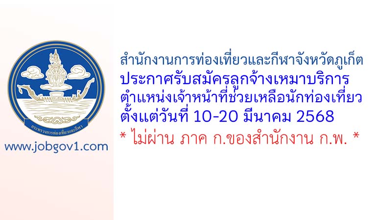 สำนักงานการท่องเที่ยวและกีฬาจังหวัดภูเก็ต รับสมัครลูกจ้างเหมาบริการ ตำแหน่งเจ้าหน้าที่ช่วยเหลือนักท่องเที่ยว ตั้งแต่วันที่ 10-20 มีนาคม 2568
