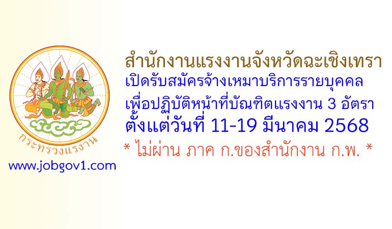 สำนักงานแรงงานจังหวัดฉะเชิงเทรา รับสมัครจ้างเหมาบริการรายบุคคลเพื่อปฏิบัติหน้าที่บัณฑิตแรงงาน 3 อัตรา ตั้งแต่วันที่ 11-19 มีนาคม 2568