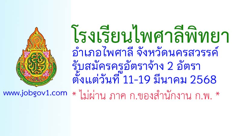 โรงเรียนไพศาลีพิทยา รับสมัครครูอัตราจ้าง 2อัตรา ตั้งแต่วันที่ 11-19 มีนาคม 2568