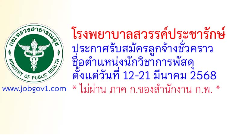 โรงพยาบาลสวรรค์ประชารักษ์ รับสมัครลูกจ้างชั่วคราว ตำแหน่งนักวิชาการพัสดุ ตั้งแต่วันที่ 12-21 มีนาคม 2568