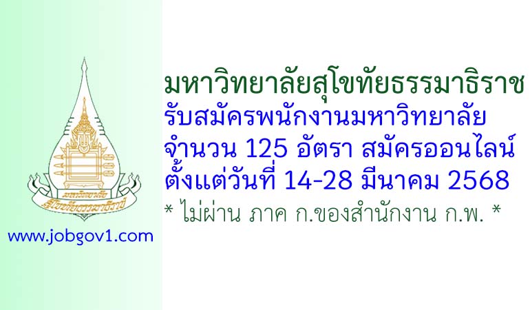 มหาวิทยาลัยสุโขทัยธรรมาธิราช รับสมัครพนักงานมหาวิทยาลัย 125 อัตรา ตั้งแต่วันที่ 14-28 มีนาคม 2568