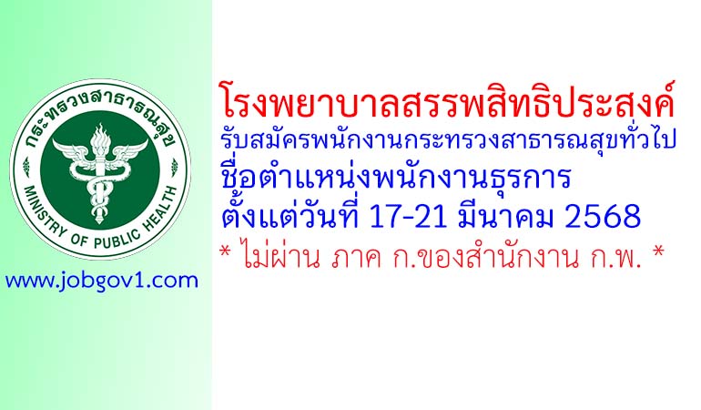 โรงพยาบาลสรรพสิทธิประสงค์ รับสมัครพนักงานกระทรวงสาธารณสุขทั่วไป ตำแหน่งพนักงานธุรการ ตั้งแต่วันที่ 17-21 มีนาคม 2568