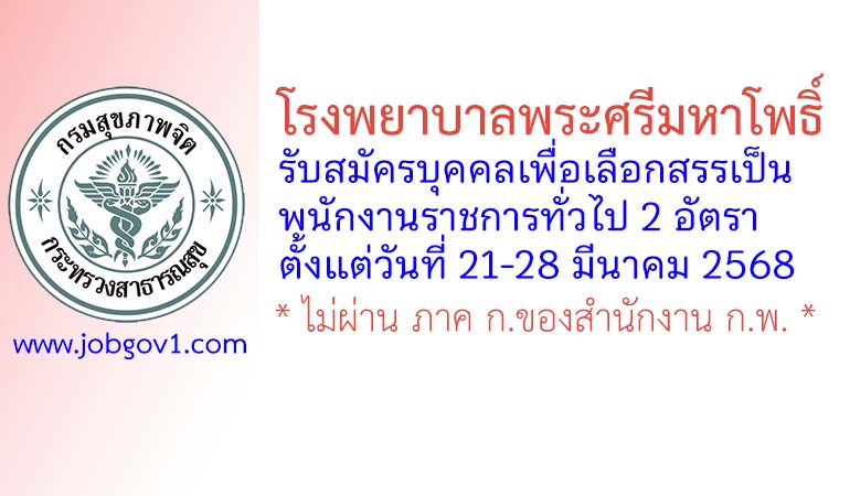 โรงพยาบาลพระศรีมหาโพธิ์ รับสมัครบุคคลเพื่อเลือกสรรเป็นพนักงานราชการทั่วไป 2 อัตรา ตั้งแต่วันที่ 21-28 มีนาคม 2568