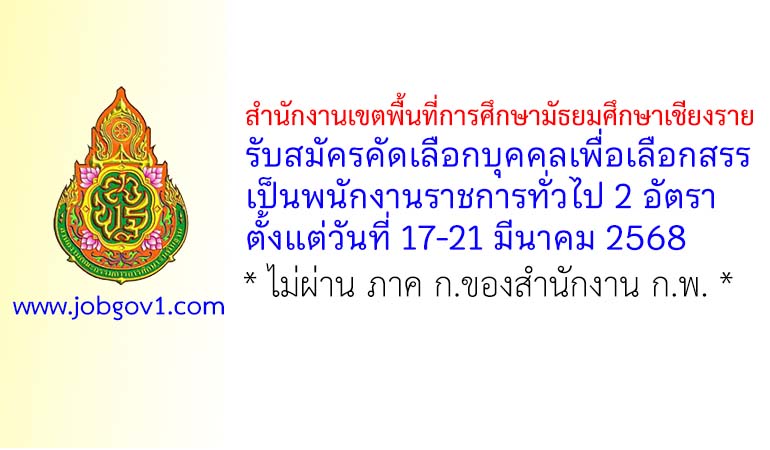 สำนักงานเขตพื้นที่การศึกษามัธยมศึกษาเชียงราย รับสมัครคัดเลือกบุคคลเพื่อเลือกสรรเป็นพนักงานราชการทั่วไป 2 อัตรา ตั้งแต่วันที่ 17-21 มีนาคม 2568