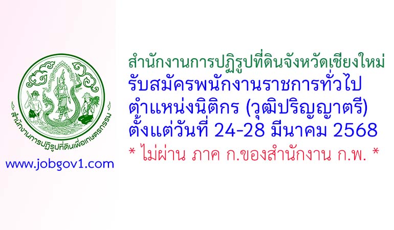 สำนักงานการปฏิรูปที่ดินจังหวัดเชียงใหม่ รับสมัครพนักงานราชการทั่วไป ตำแหน่งนิติกร ตั้งแต่วันที่ 24-28 มีนาคม 2568