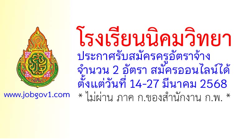 โรงเรียนนิคมวิทยา รับสมัครครูอัตราจ้าง จำนวน 2 อัตรา ตั้งแต่วันที่ 14-27 มีนาคม 2568