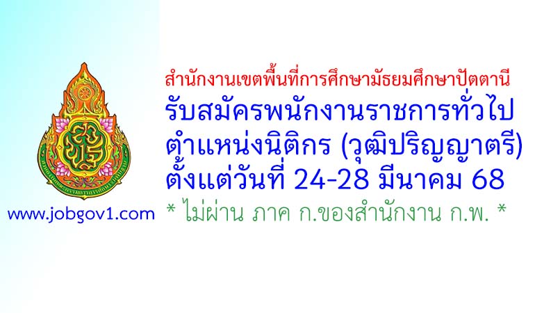 สำนักงานเขตพื้นที่การศึกษามัธยมศึกษาปัตตานี รับสมัครพนักงานราชการทั่วไป ตำแหน่งนิติกร ตั้งแต่วันที่ 24-28 มีนาคม 2568