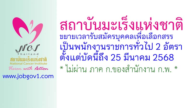 สถาบันมะเร็งแห่งชาติ ขยายเวลารับสมัครบุคคลเพื่อเลือกสรรเป็นพนักงานราชการทั่วไป 2 อัตรา ตั้งแต่บัดนี้ถึง 25 มีนาคม 2568