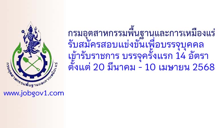 กรมอุตสาหกรรมพื้นฐานและการเหมืองแร่ รับสมัครสอบแข่งขันเพื่อบรรจุบุคคลเข้ารับราชการ บรรจุครั้งแรก 14 อัตรา ตั้งแต่ 20 มีนาคม – 10 เมษายน 2568