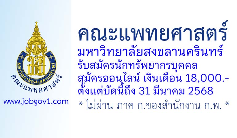คณะแพทยศาสตร์ มหาวิทยาลัยสงขลานครินทร์ รับสมัครนักทรัพยากรบุคคล ตั้งแต่วันที่ 18-31 มีนาคม 2568
